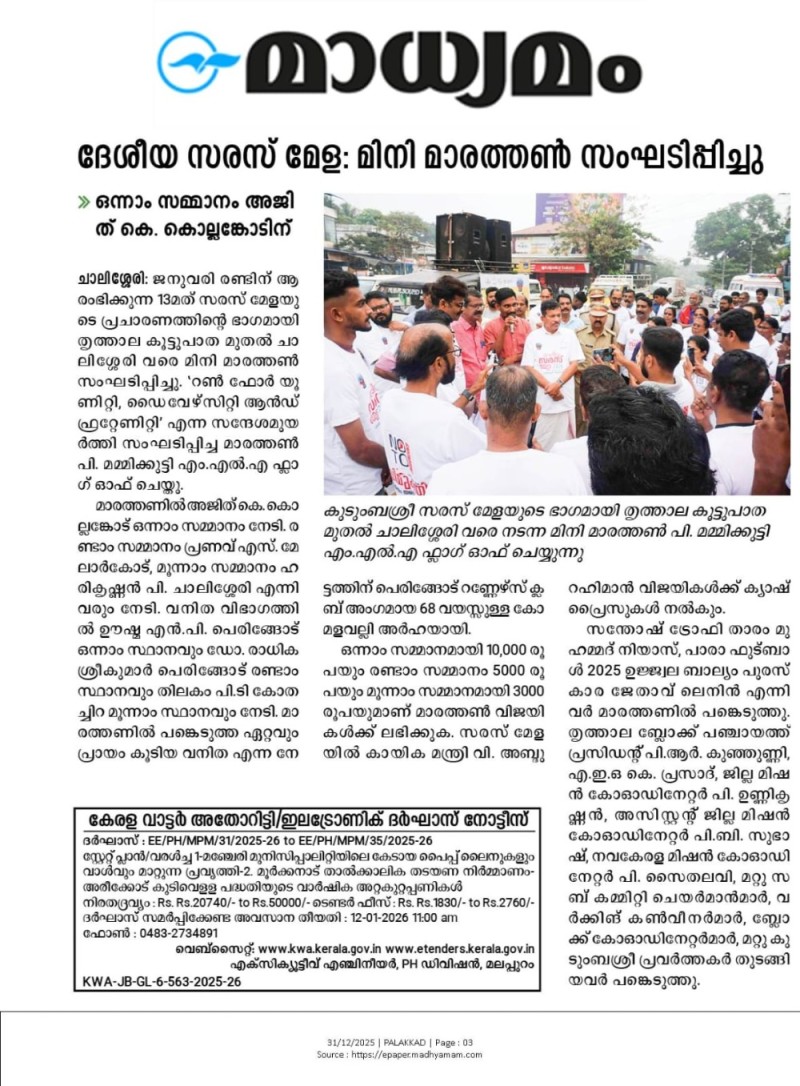31/12/2025- ദേശീയ സരസ് മേള; മിനി മാരത്തൺ സംഘടിപ്പിച്ചു.