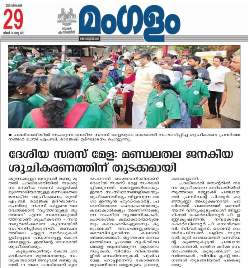 29/12/2025-ദേശീയ സരസ് മേള; മണ്ഡലതല ജനകീയ ശുചീകരണത്തിന് തുടക്കമായി