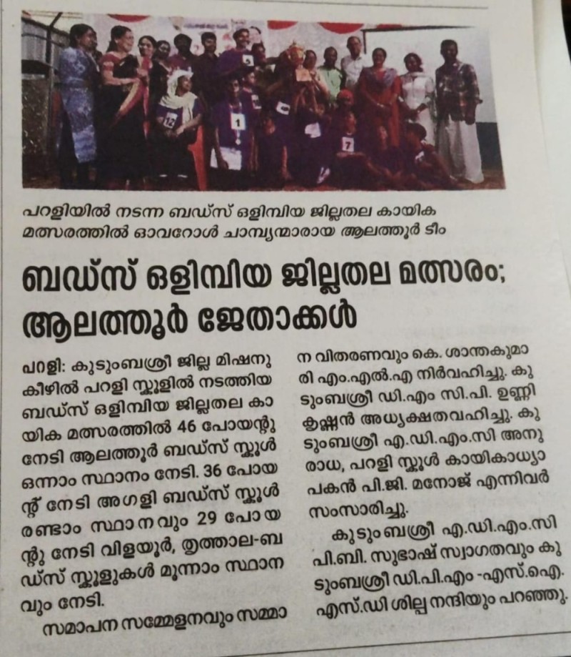 21/12/2025-ബഡ്സ് ഒളിമ്പിയ ജില്ലാതല മത്സരം; ആലത്തൂർ ജേതാക്കൾ