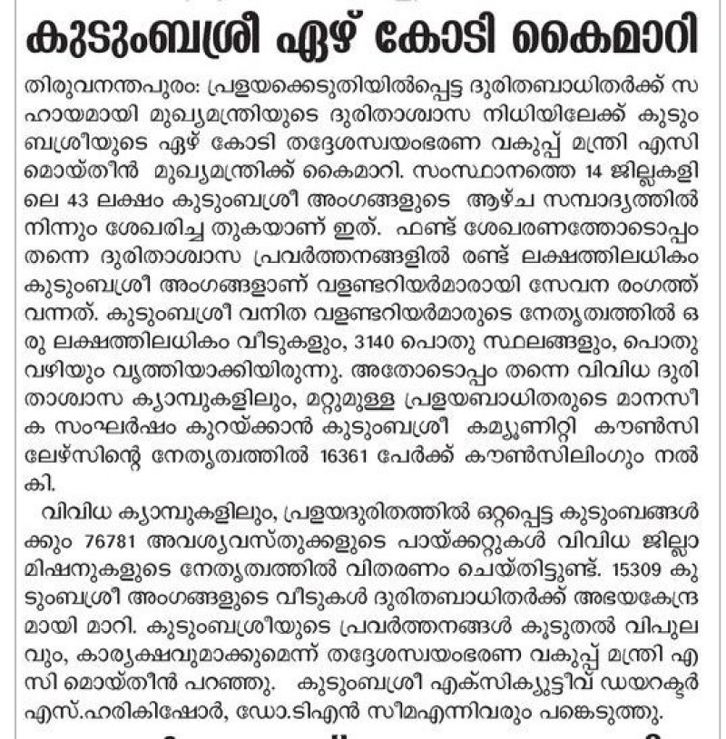 Mass Cleaning Campaign@Pulikeezhu Block(Madhyamam-29/08/2018)