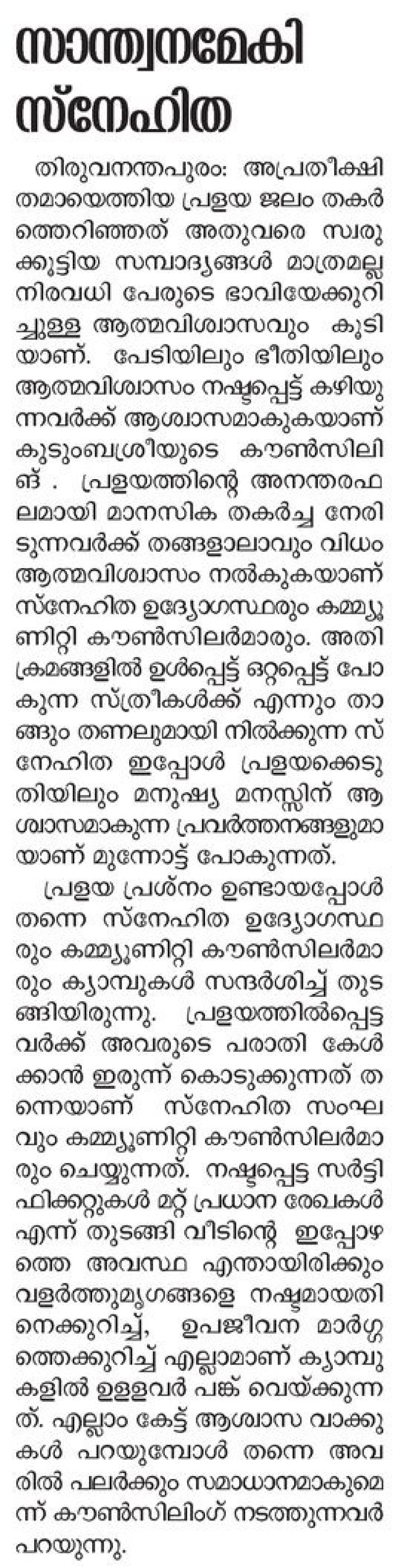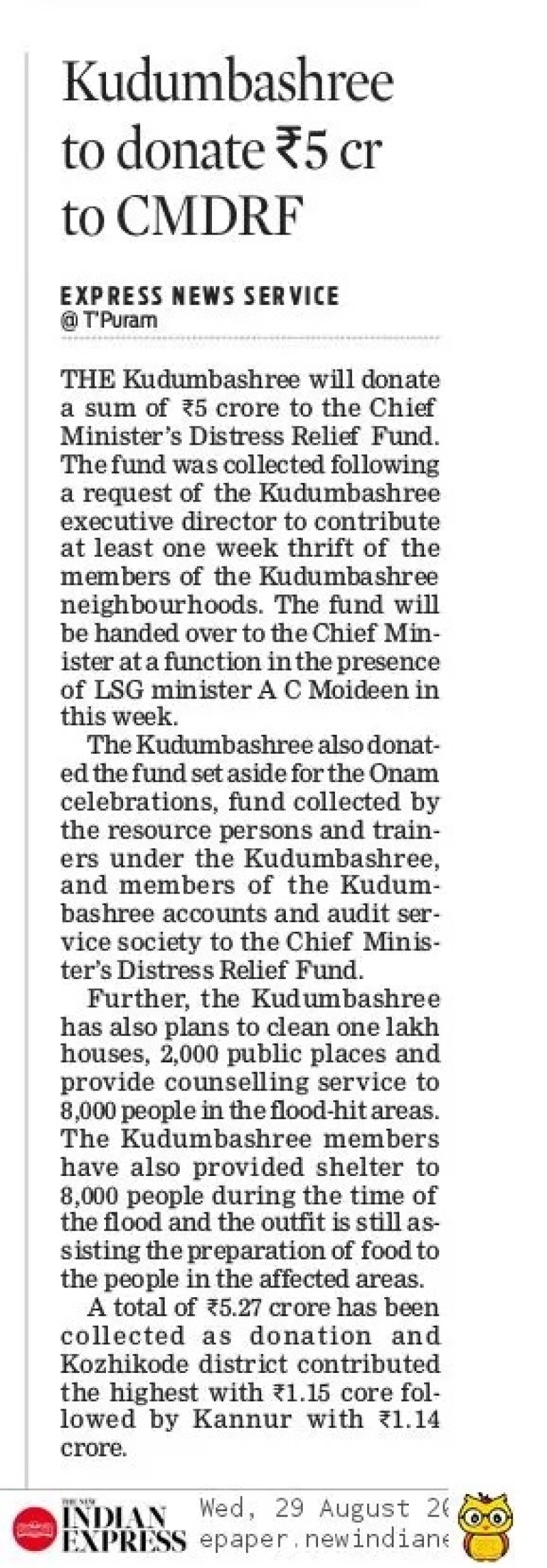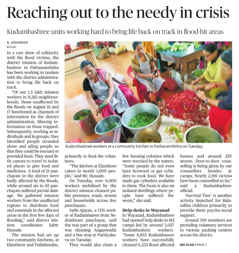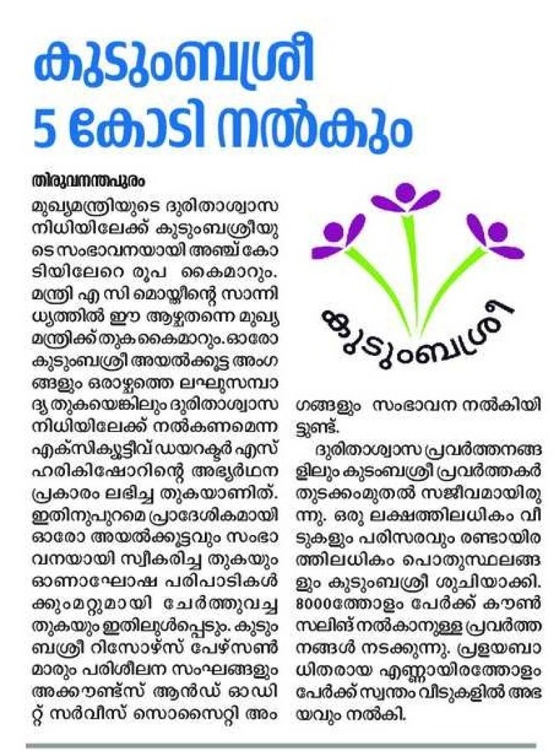 News about kudumbashree CDS that give help to flood affected families, Deshabhimani on 23/08/2018