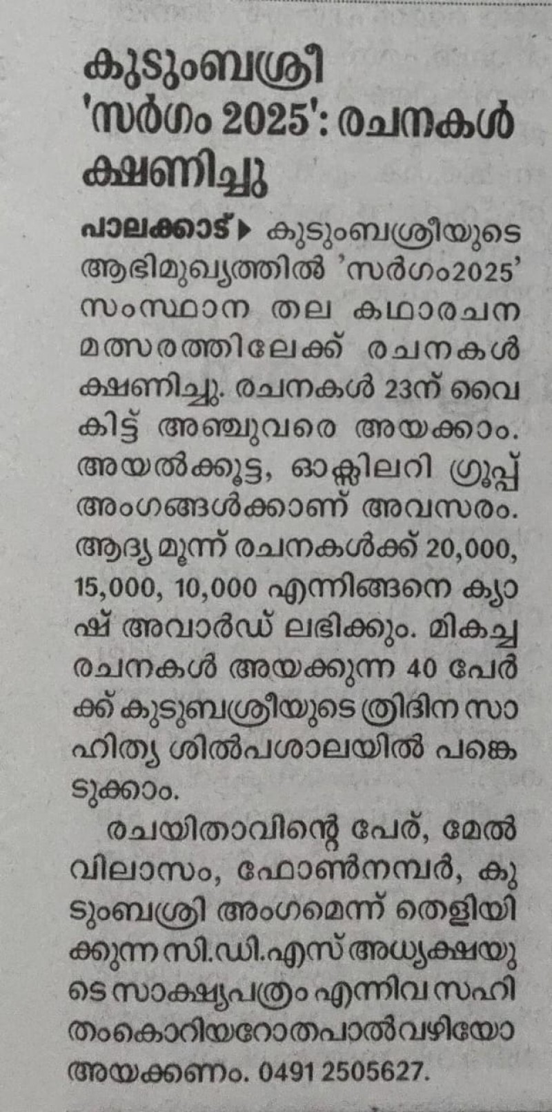 കുടുംബശ്രീ 'സർഗം 2025' -19/09/2025