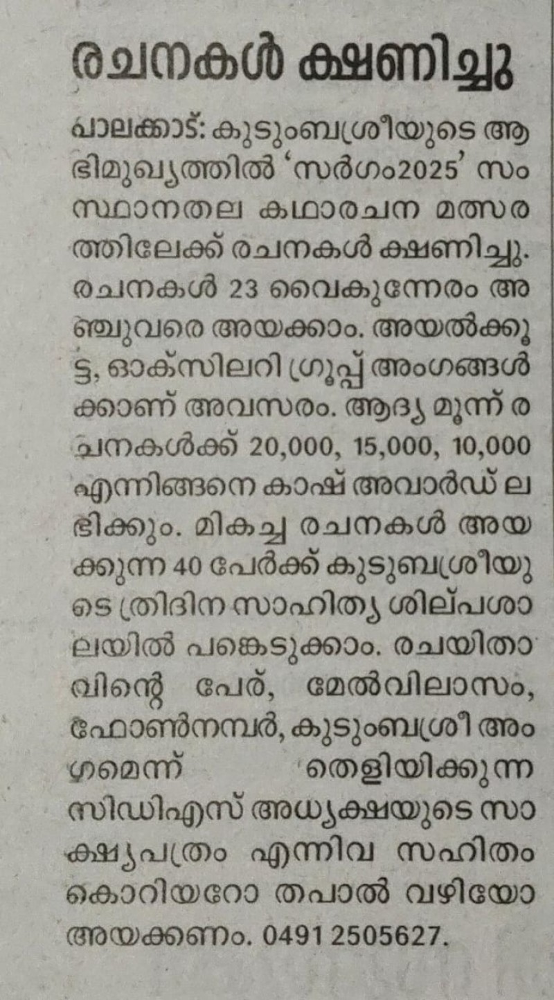 രചനകൾ ക്ഷണിച്ചു -19/09/2025