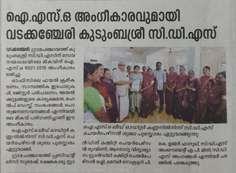 വടക്കഞ്ചേരി സിഡിഎസ് -ISO അംഗീകാരം -24/08/2025