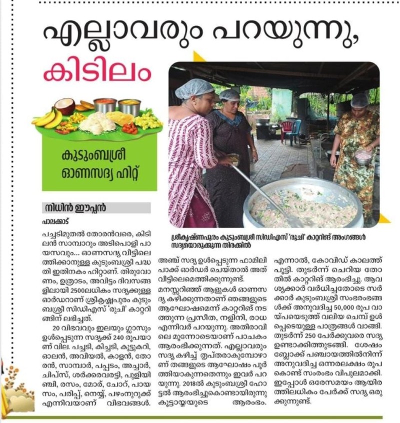 കുടുംബശ്രീ ഓണസദ്യ-30/08/2025