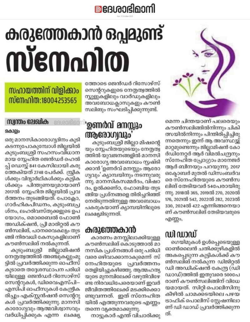 12.10.2025 | Mental Health Day - Snehitha Initiatives | Deshabhimani