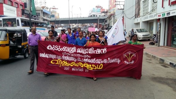 Kuduambashree District Mission Thiruvananthapuram Conducted Disha VIlambara Rally on 27-01-2017 in East Fort Thiruvananthapuram. The Rally STarted from SMV Model School thampanoor at 5:00 PM and ended at E.K.Nayanar Park, East Fort at 5:30 Pm. District Panchayat Mrember Ushakumari.P Flag off the rally. Shri. Selvadas.L, DMC, Smt. Sindhu, ADMC, District Mission team, Supporting staff participated.
