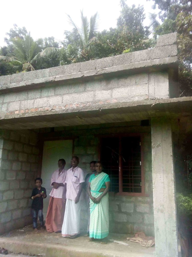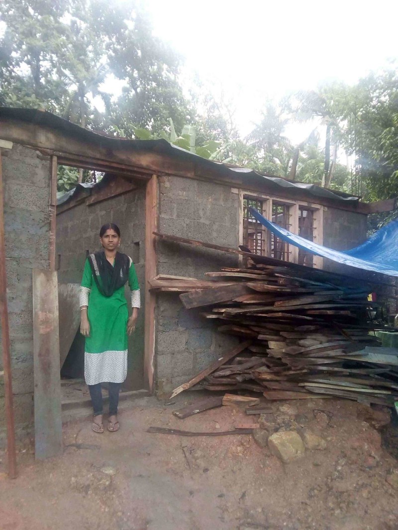 Smt. Raji, In front of her PMAY house( Lintel stage)