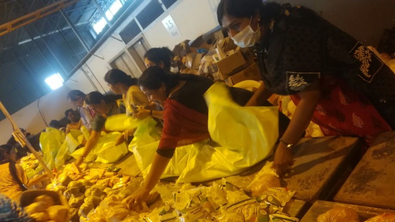 INVOLVEMENT OF HON.CHAIRPERSON MRS JESSY PETER @ FLOOD RELIEF FOOD PACKING CONDUCTED BY KUDUMBASHREE DISTRICT MISSION
