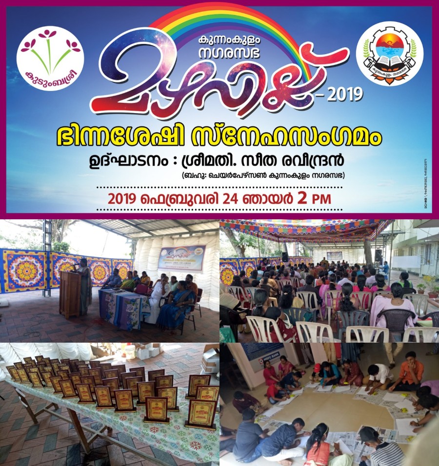 Mazhavillu 2019 - A get together of persons with disabilities in the kunnamkulam municipal area was conducted at kunnamkulam municipality on 24/02/2019. The function was inaugurated by Kunnamkulam Municipal Chairperson Smt. Seetha Raveendran . Vice Chairman Shri. P.M Suresh presided over the meeting. Standing committee chairpersons Suma Gangadharan, Misha Sebastian, Kunnamkulam Municipal Secretary Shri K.K Manoj, Councilors Shri K.A Aziz, Shri O.G Baji, Shri K.B Salim, Health Supervisor Shri K.S Lakshmanan, CDS chairperson Smt. Soumya Anilan, Smt. Shiji Nikesh, NULM City Mission Manager Smt Simina M has came up with felicitation speeches.