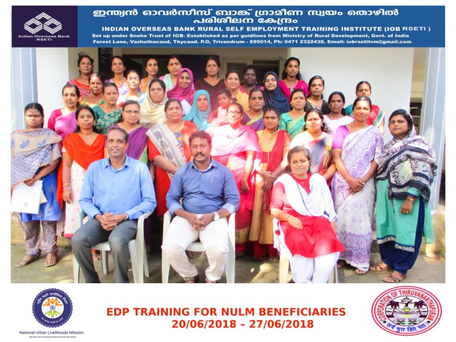 We have organized EDP training for 36 participants at IOB RSETI from 20.06.2018 to 27.06.2018.